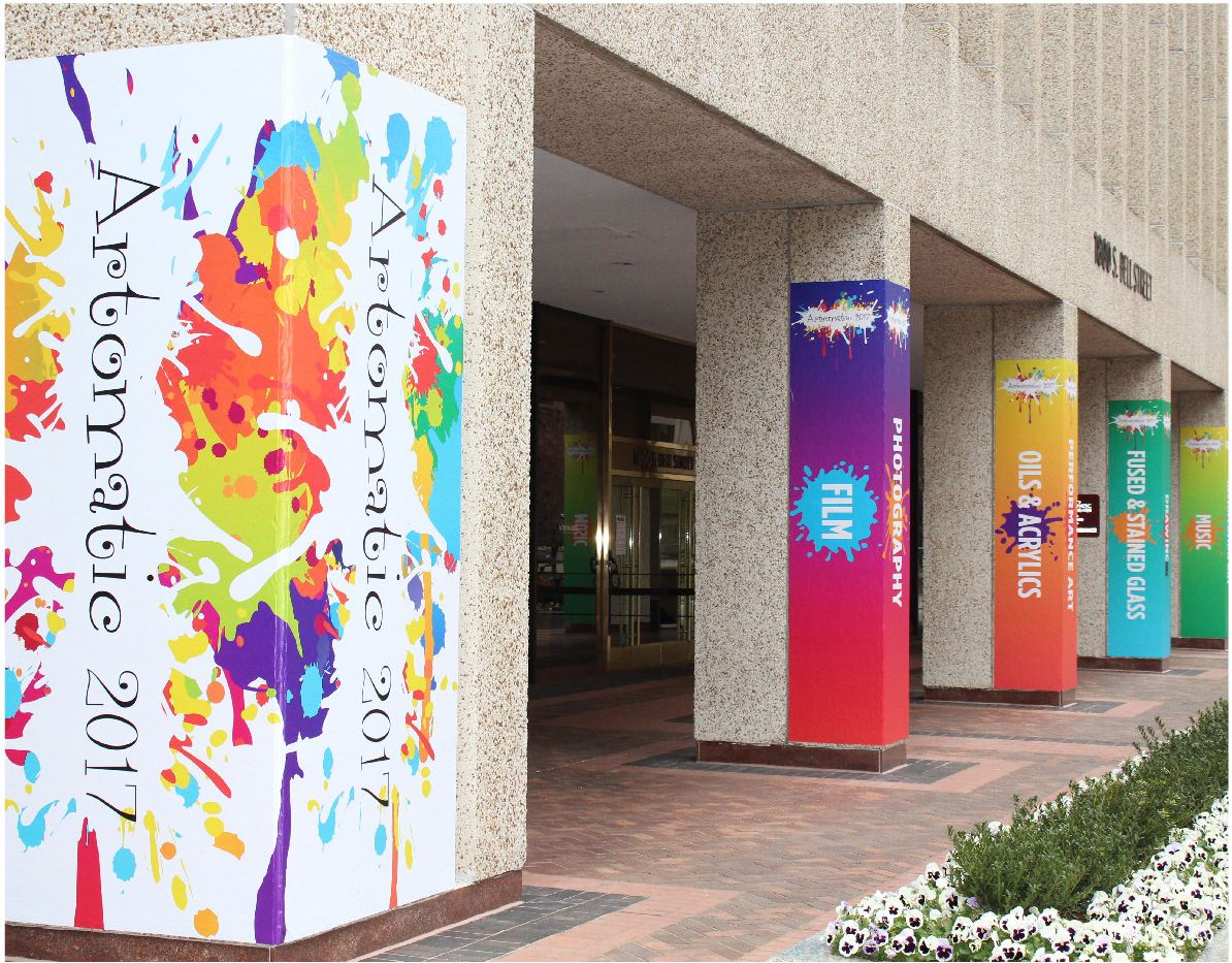 I designed the mural as vector art in Illustrator and projected it onto the wall. I outlined the entire rendering and then proceeded to painted everything by hand one color at a time. The entire process took approximately two weeks.